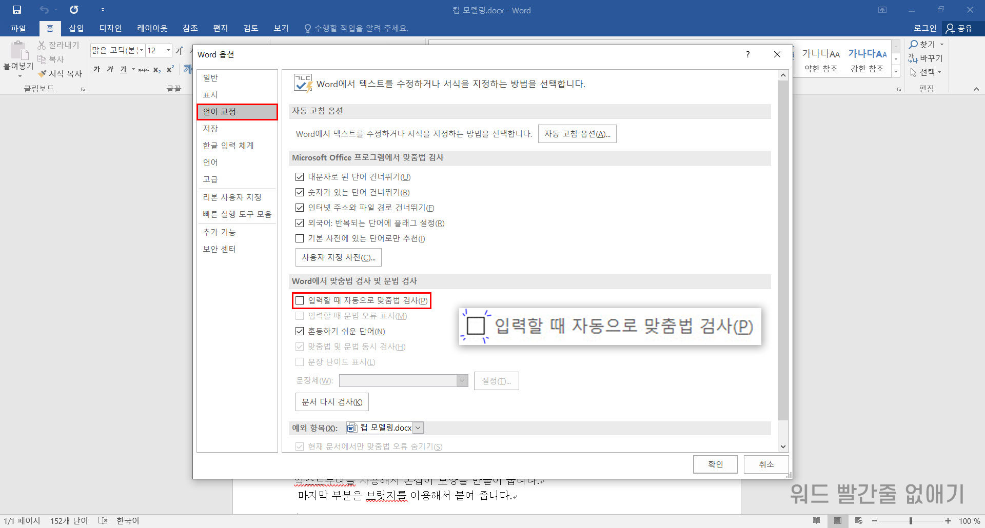 워드 한글 빨간줄 없애기 쉽죠?