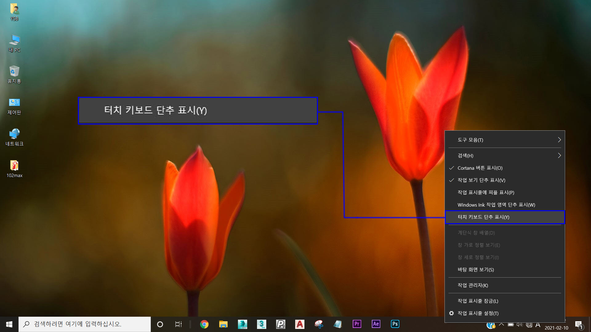 터치 키보드 단추 표시를 클릭 했어도 아무 반응은 없습니다. 터치 키보드 아이콘을 클릭해야 실행됩니다.
