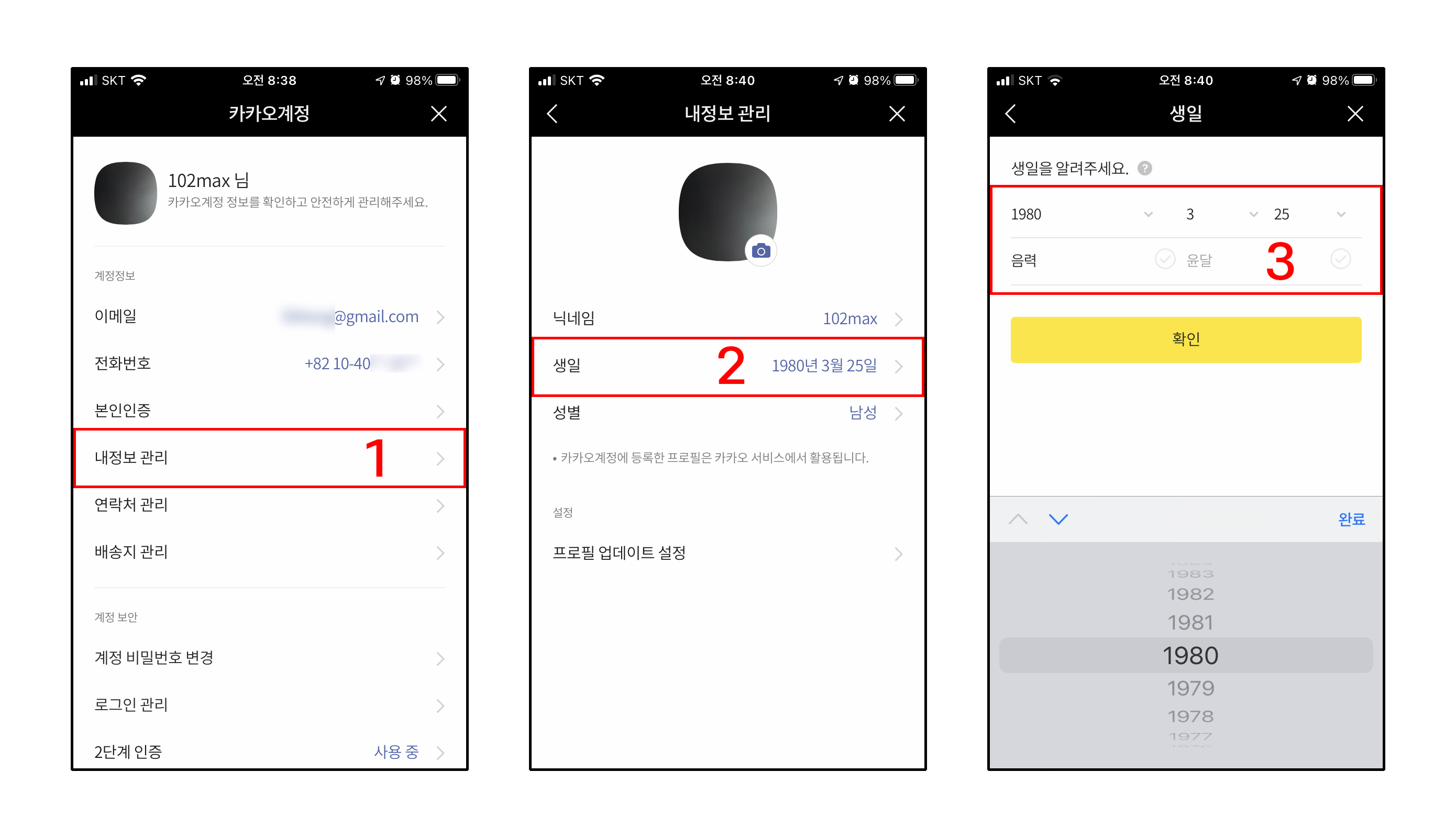 카톡 생일 변경