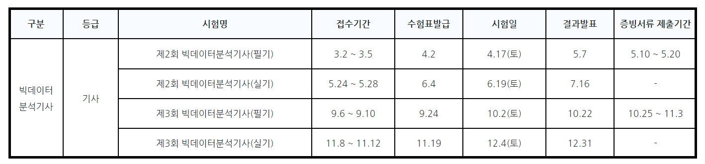 2021년 빅데이터 분석기사 시험일정