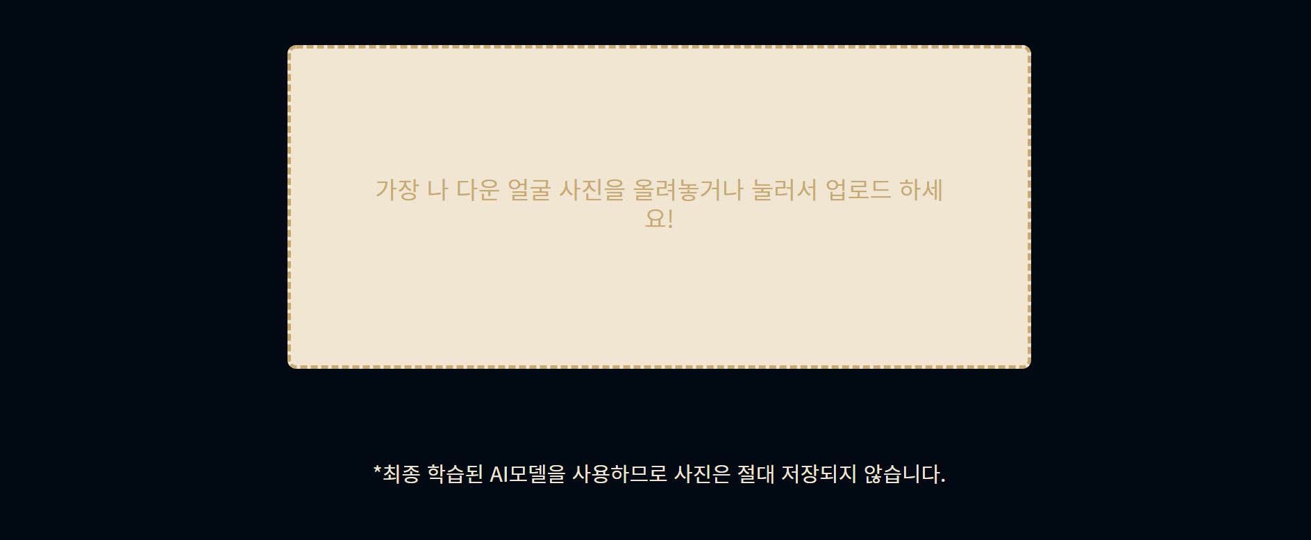 하단으로 스크롤을 내리면 얼굴 정면 사진을 올려놓는 사각형이 보입니다. 클릭해서 업로드 해도 되지만 저는 폴더를 옆에 두어 사진을 드래그 해보니 잠시 후 바로 결과가 나왔습니다.