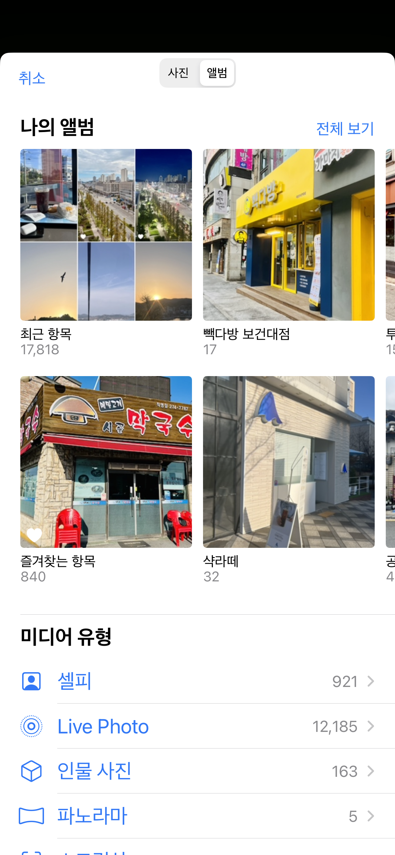 사진뿐만 아니라 사람, 아 그리고 사진 셔플 등 분류를 다양하게 만들었어요