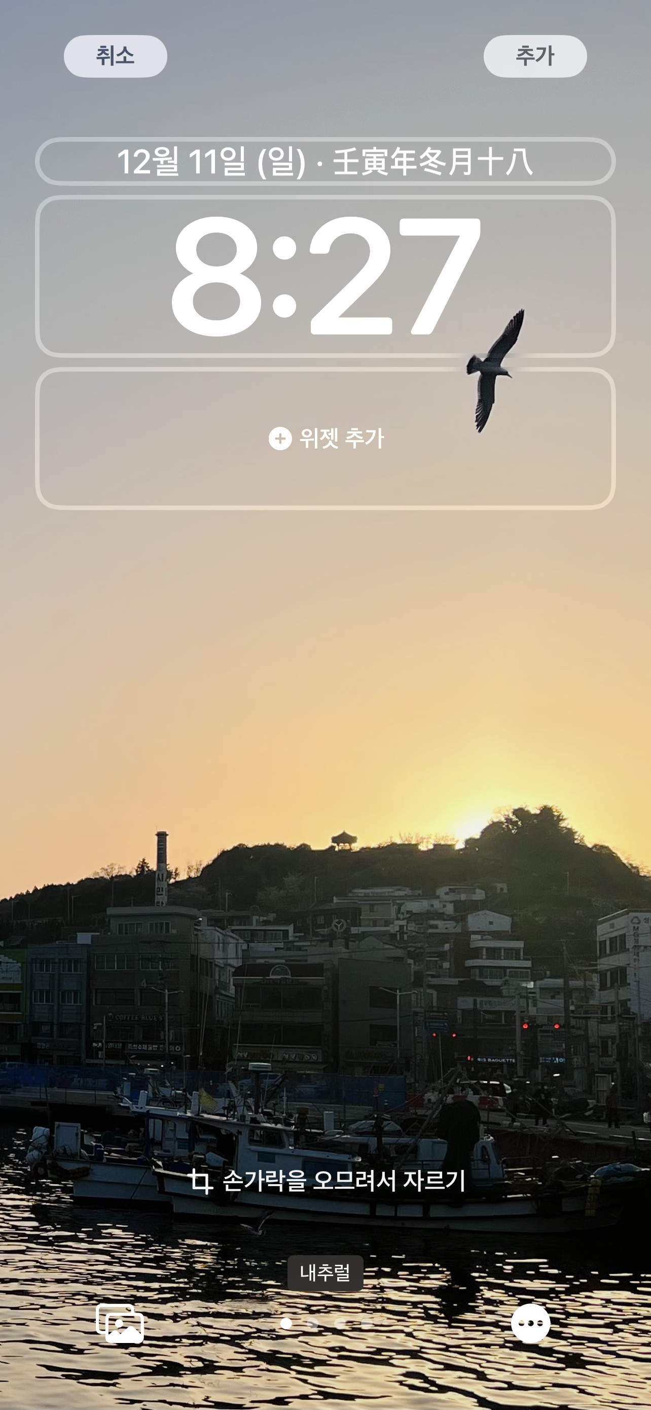 갈매기가 시계 테두리 라인 위로 올라왔네요~