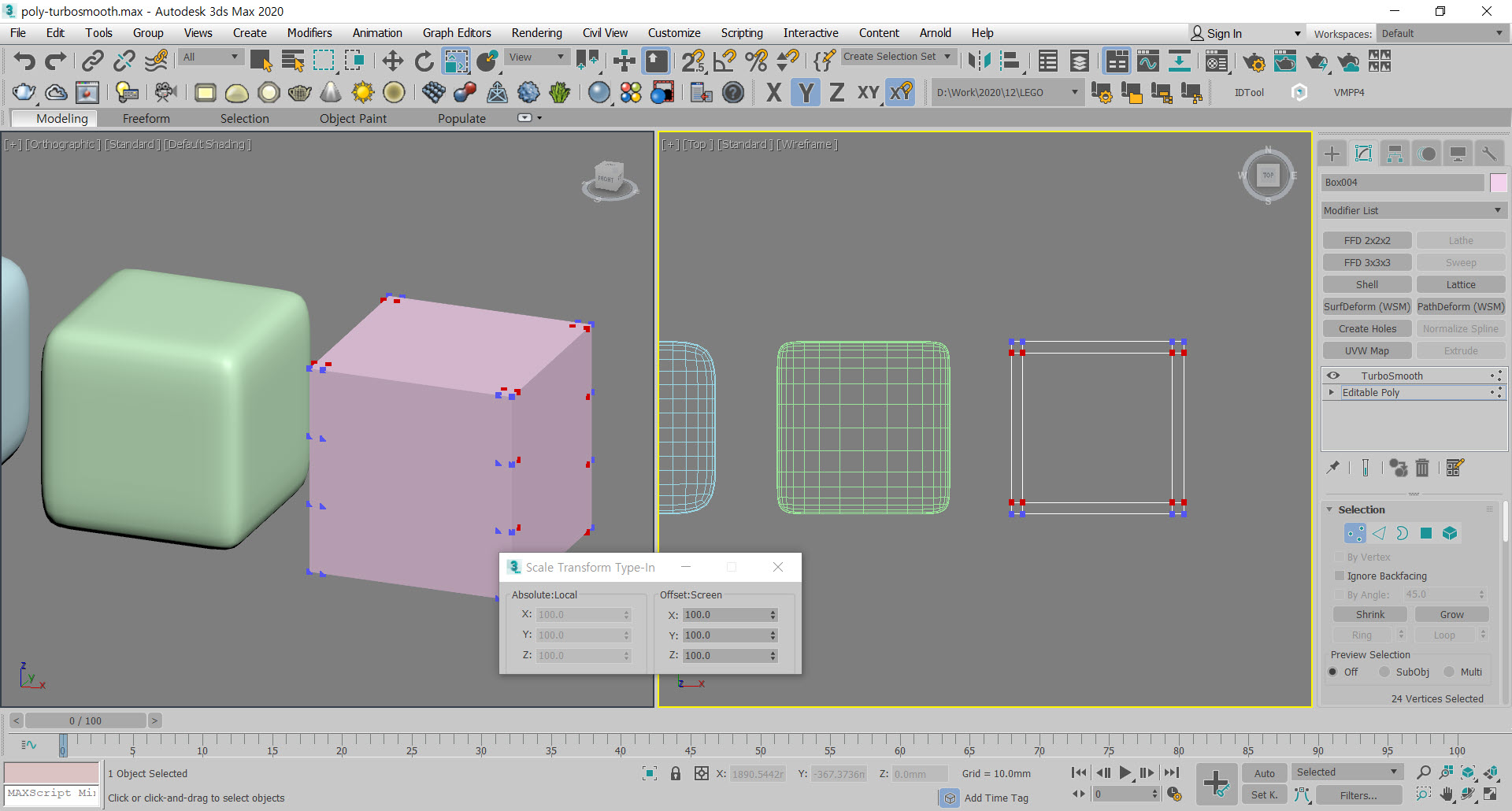 좌측에 TurboSmooth 적용된 라인을 보면 어떻게 텐션이 적용되는지 알 수 있습니다.