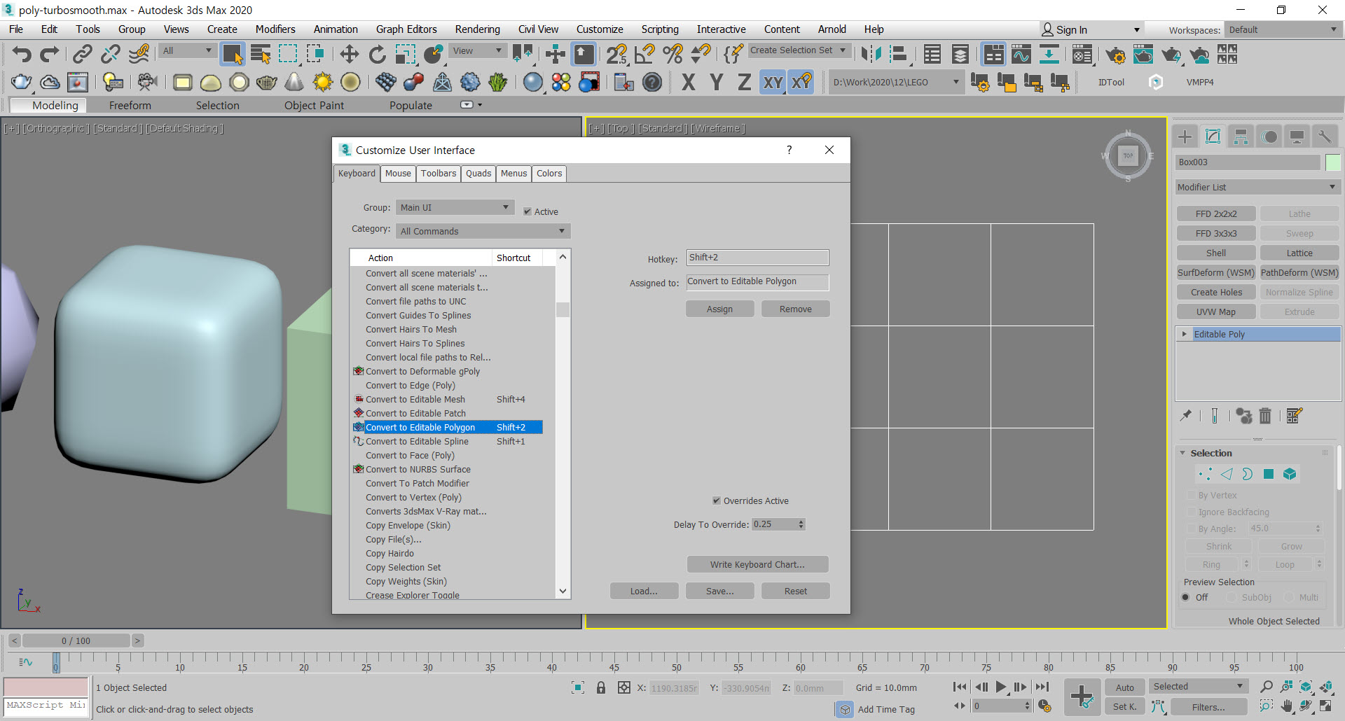 Editable Poly 명령어는 자주 사용하기 때문에 단축키로 설정해 줍니다.